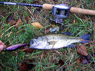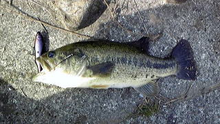 ポインテッドアークSLB103(ミッドナイトスペシャル)をウイードと岩の隙間に投げて、リトリーブ直後にバイトがありました。